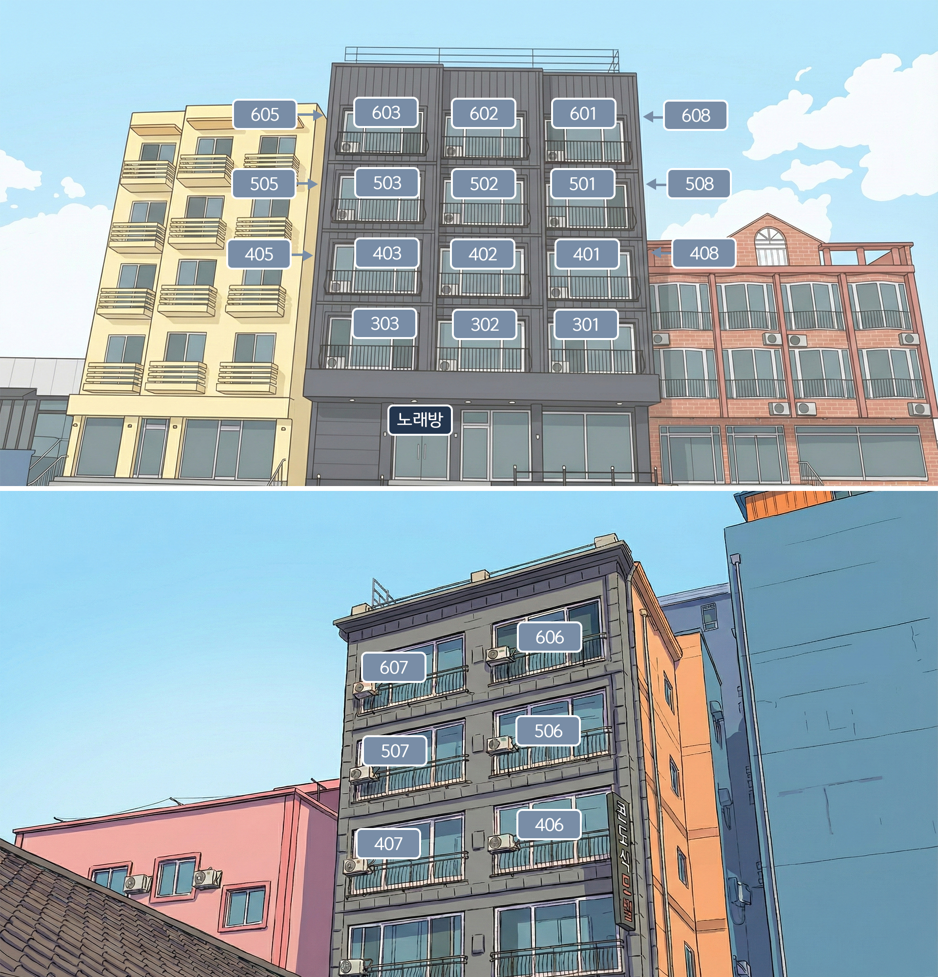 양양 아름다운바다 애견펜션 배치도 안내입니다.